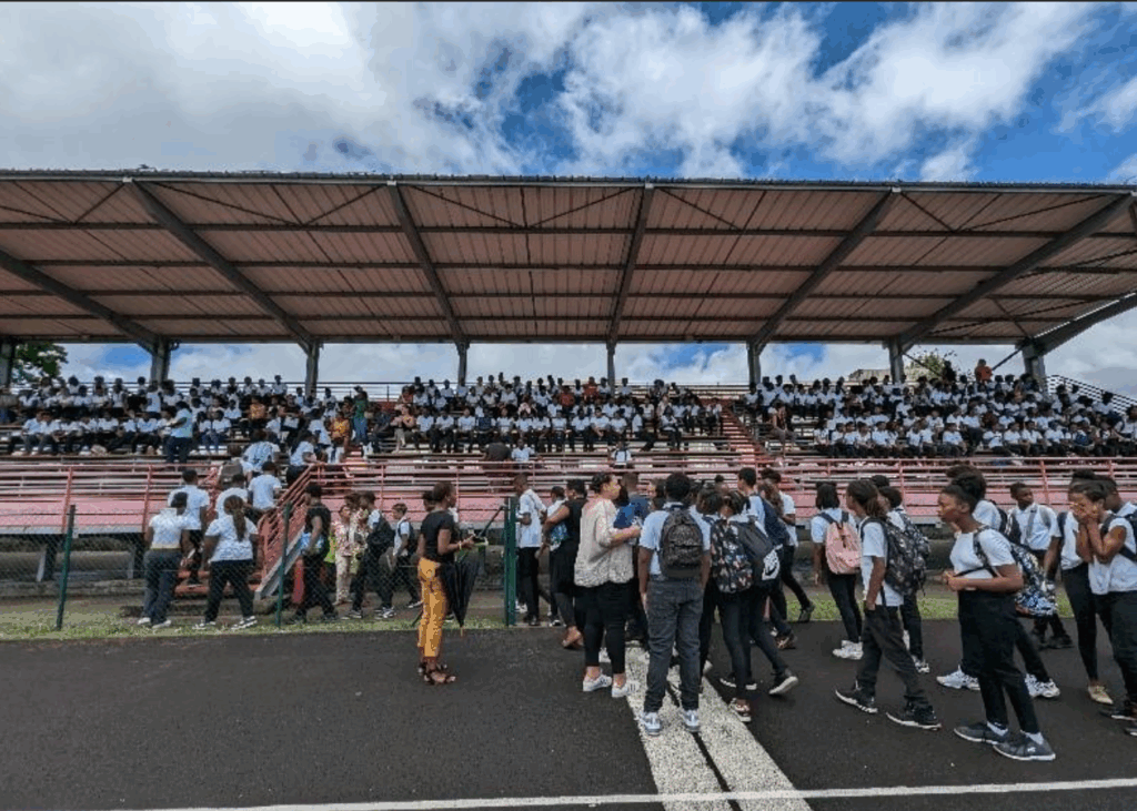 évacuation élèves de primaire et collège secteur Petit Manoir avec les scolaires de la Ville du Lamentin